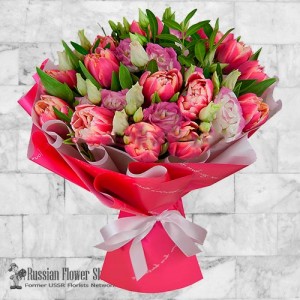 Composition: Tulip - 15, lisianthus - 3, Pistachio, Wrapping Paper, Tape